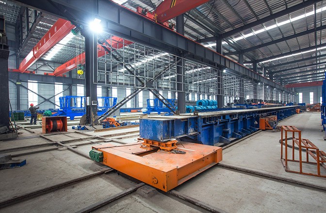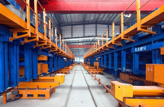 生產(chǎn)要素相對(duì)集中:將鋼筋綁扎區(qū)、模板澆筑區(qū)、養(yǎng)護(hù)區(qū)、張拉壓漿區(qū)等環(huán)節(jié)集中設(shè)置,使鋼筋綁扎、合模、混凝土澆筑、拆模、養(yǎng)護(hù)等都能在同一廠(chǎng)房?jī)?nèi)進(jìn)行,大大優(yōu)化了生產(chǎn)要素配置和生產(chǎn)力空間布局,且不受氣候等環(huán)境影響,實(shí)現(xiàn)了“多、快、好、省”的生產(chǎn)經(jīng)營(yíng)目標(biāo)。